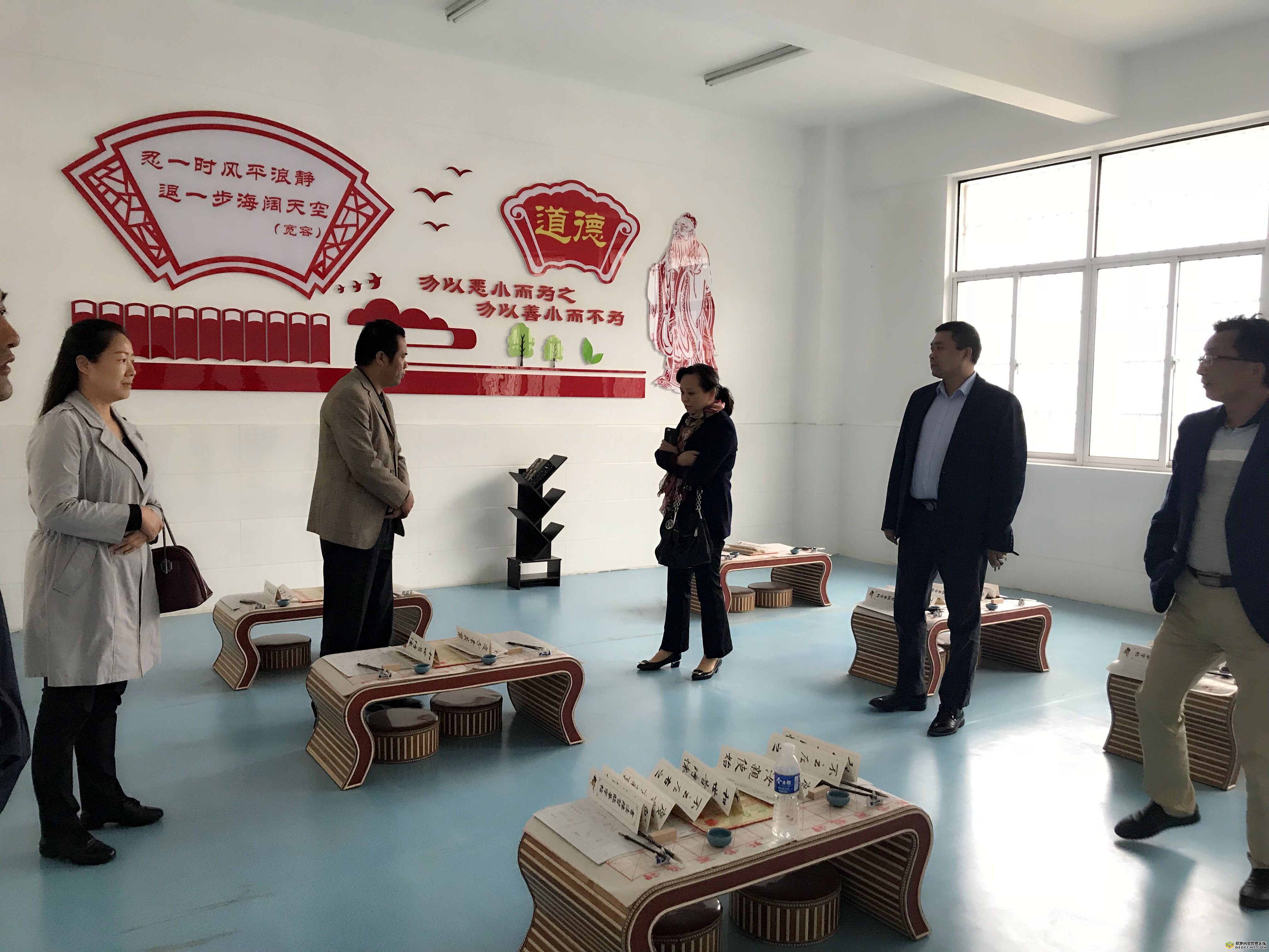 金主席一行还参观了团建、道德学堂场地,对我们学校其他的场地建设也是赞赏有加。金主席说:场地建设工作做得很好,但是还有待加强,希望我们下次再来的时候,你们这里又不一样!董事长胡春森说:请领导放心,肯定会的。希望领导们以后经常过来指导,我们还在成长的初期,希望领导多多指教。