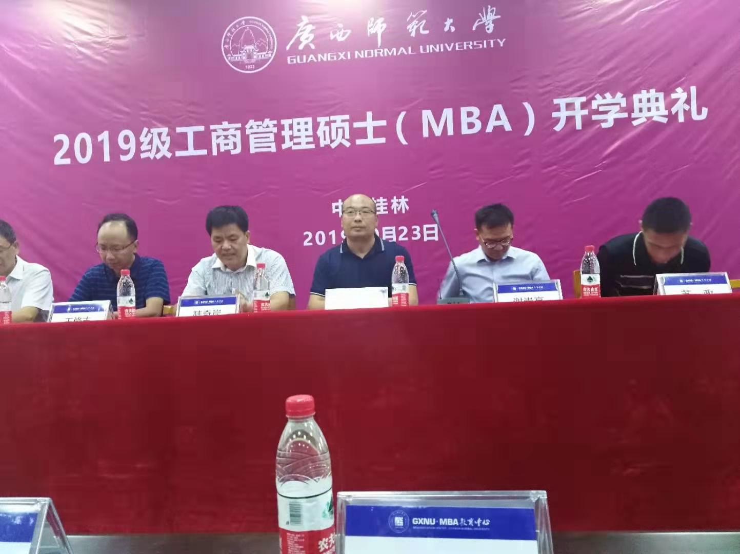 出席典礼盛会的有广西师大研究生院副院长马焕灵教授,经管学院院长陆奇岸教授,党委书记谢崇高教授,副书记苏政教授,副院长周劲波教授、王修志教授、贤成毅教授,MBA中心主任蒋团标教授,19级MBA全体新生以及教师,老生代表。我院副院长钱峰教授作为特邀嘉宾出席典礼。