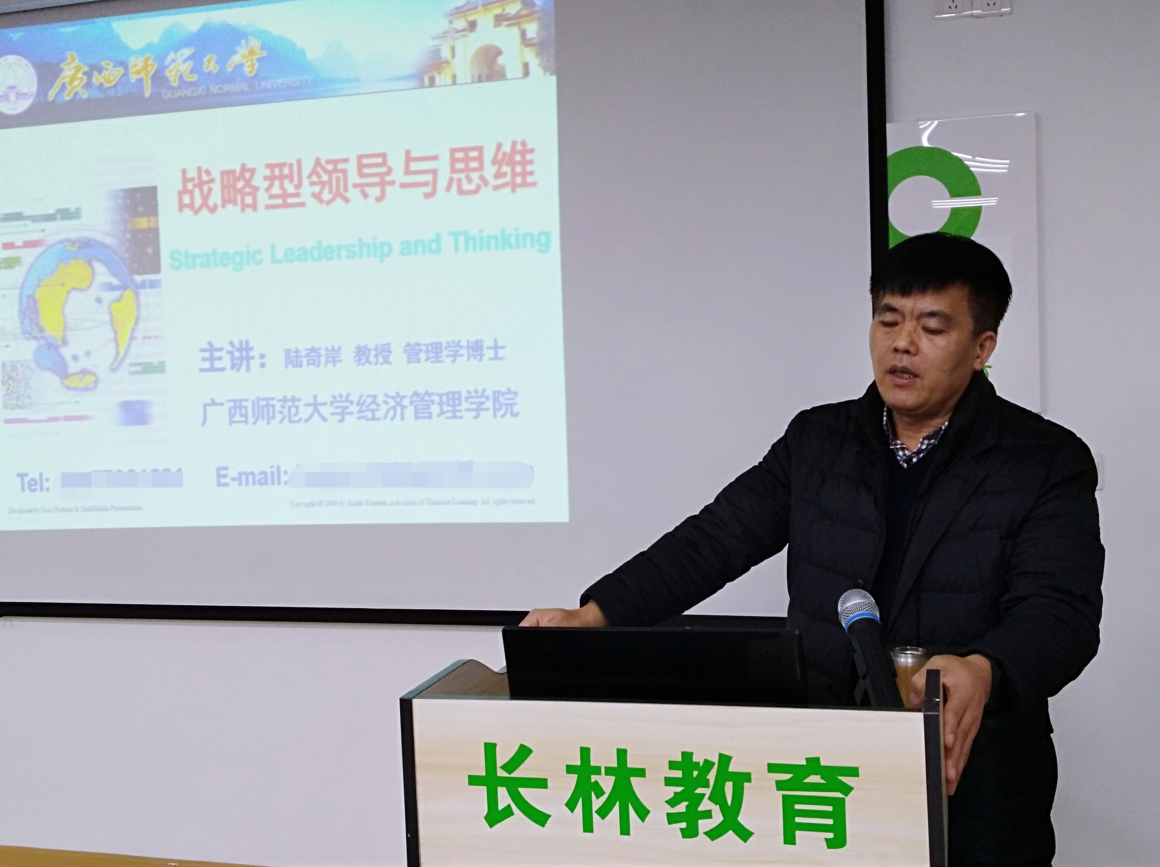 2019年12月28日—29日,广西师范大学经济管理学院院长、管理学博士、全国”企业战略管理”知名专家陆奇岸教授,莅临武汉,为18级MBA(武汉)讲授“战略领导与思维”课程。