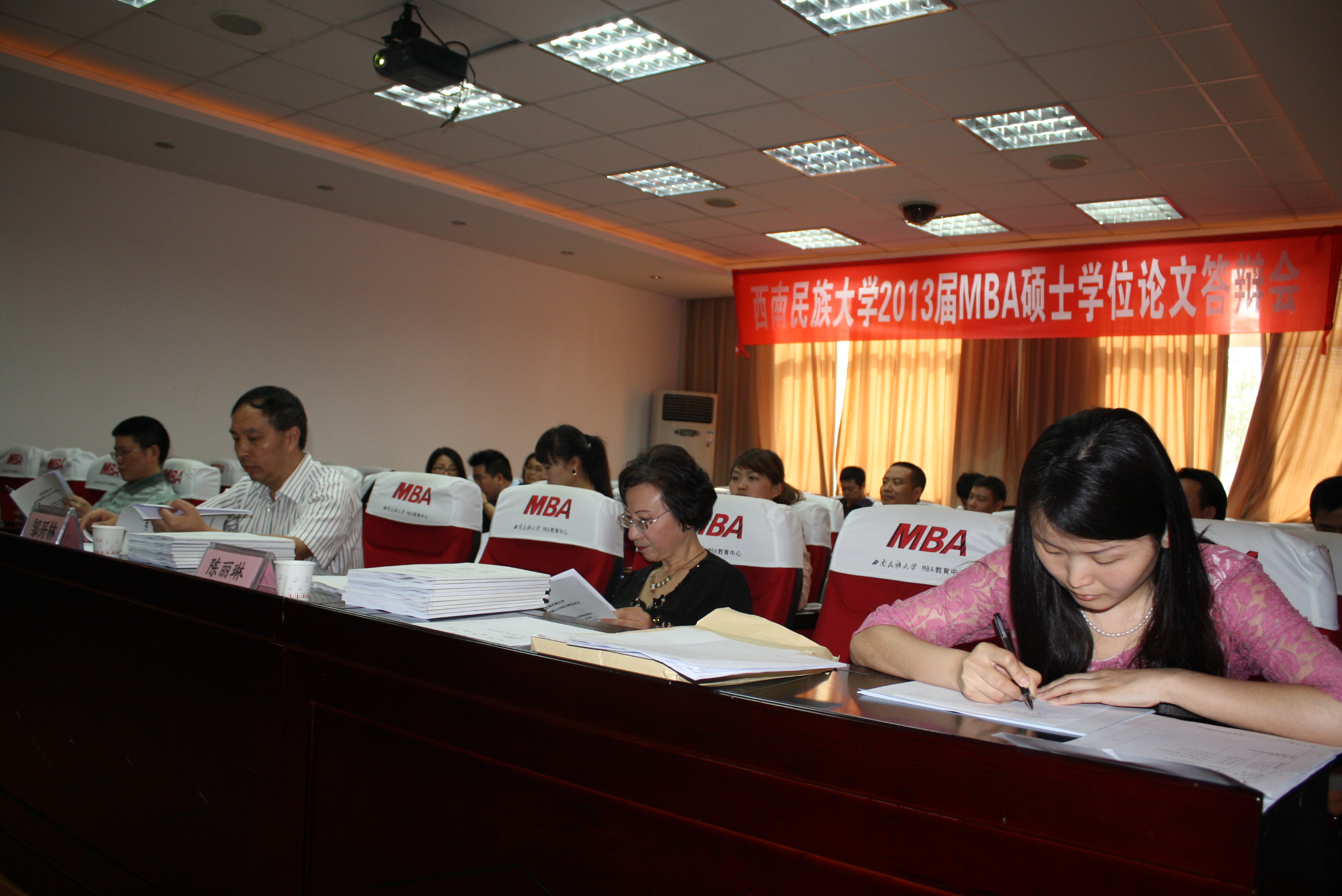2013年6月1日,西南民族大学第二批2013届MBA(武汉生源)学位论文答辩会在MBA中心专用教室顺利举行。由于2013届MBA(武汉生源)毕业生人数较多,今年MBA(工商管理硕士)研究生学位论文答辩共分两个批次进行,第一批次5月份已经在武汉完成答辩。